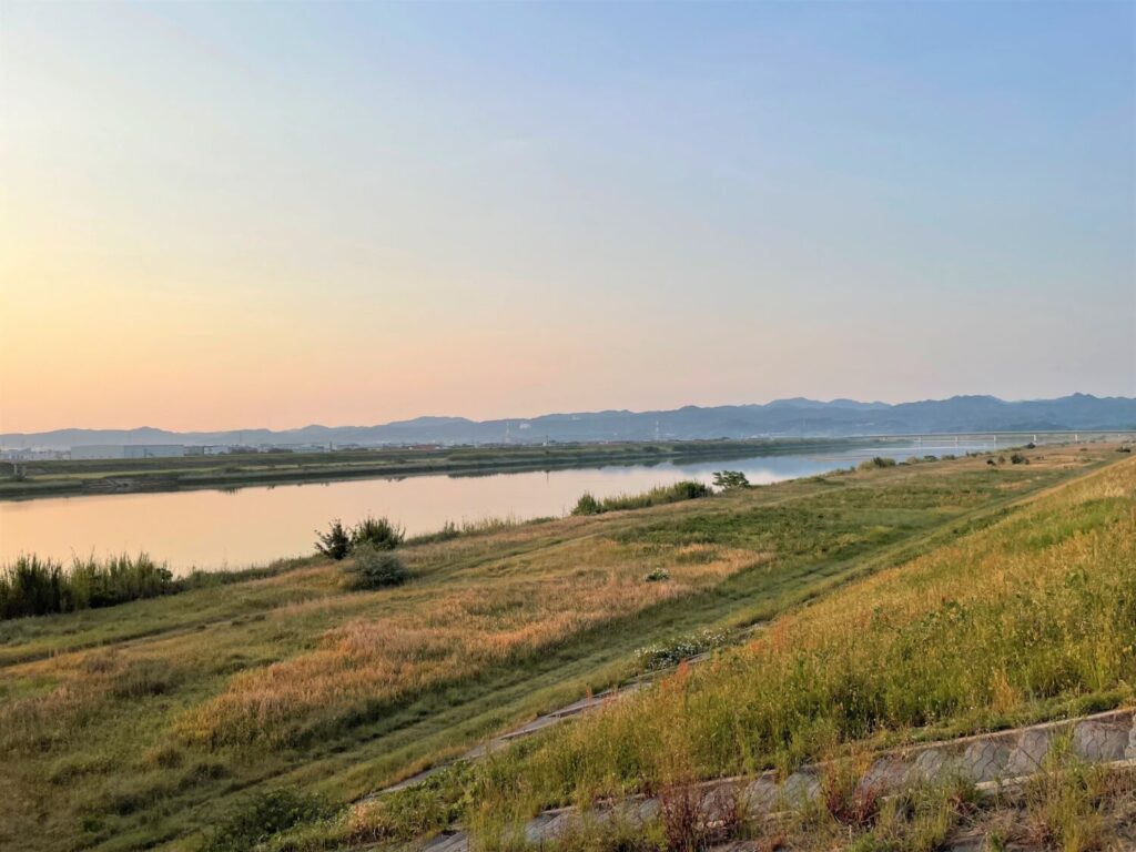 まるで流れがないかのように見える川面に移るのは