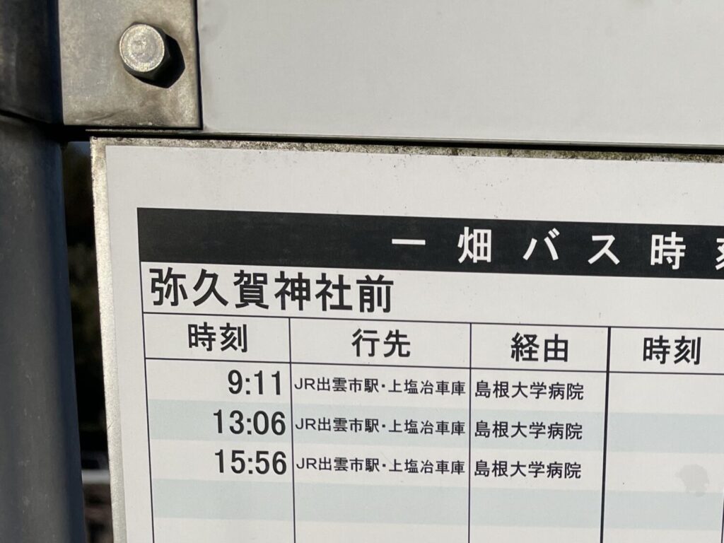 わが家の最寄りのバス停は、国道9号にある一畑バスさんの 弥久賀神社前(みくがじんじゃまえ)、