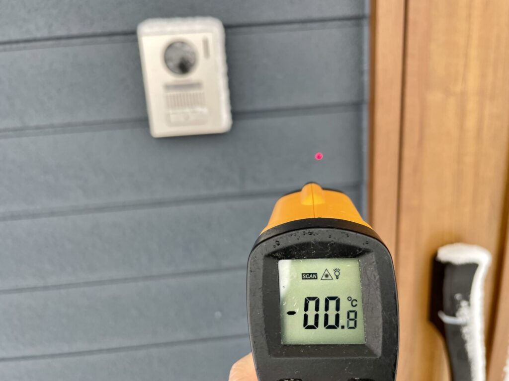 インターフォン横の外壁の表面温度は、マイナス 0.8℃