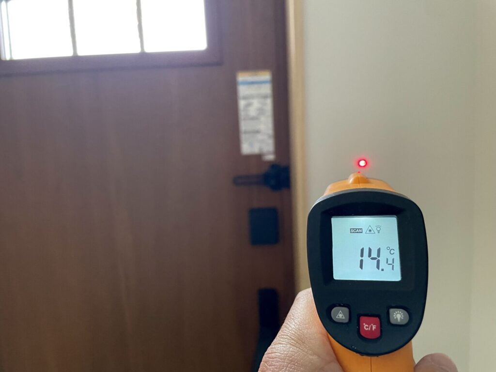 玄関の内側の壁で、14.4℃