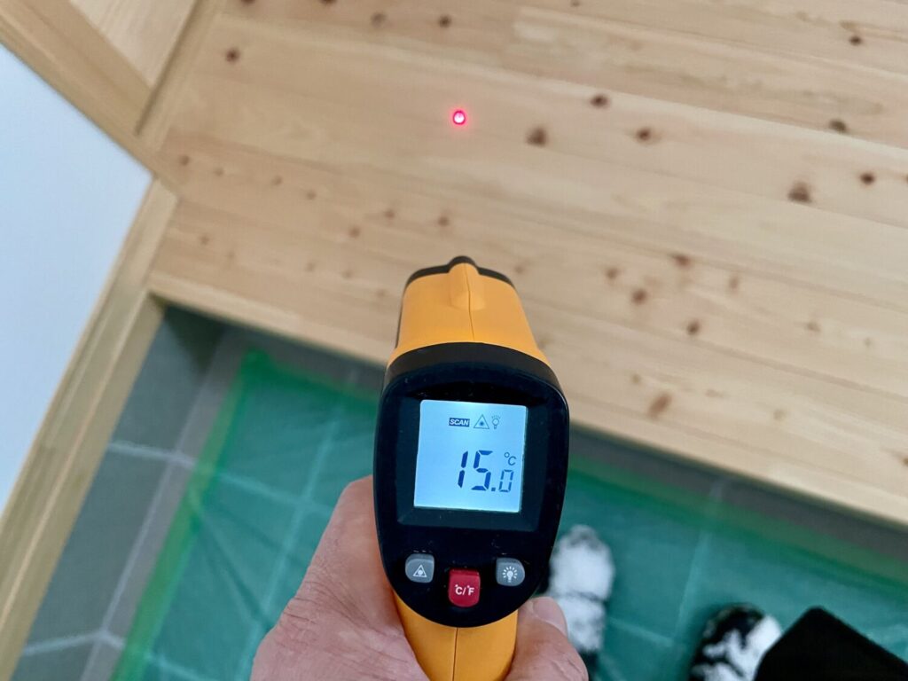 リビングや廊下からの伝導を受けている玄関床は、15℃