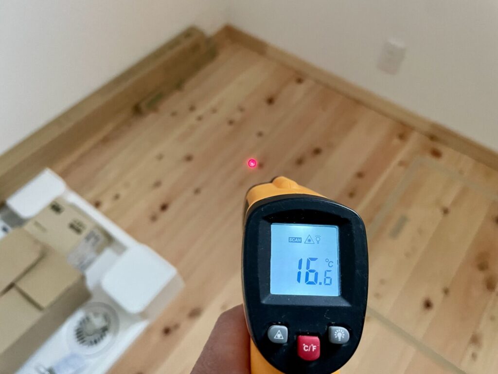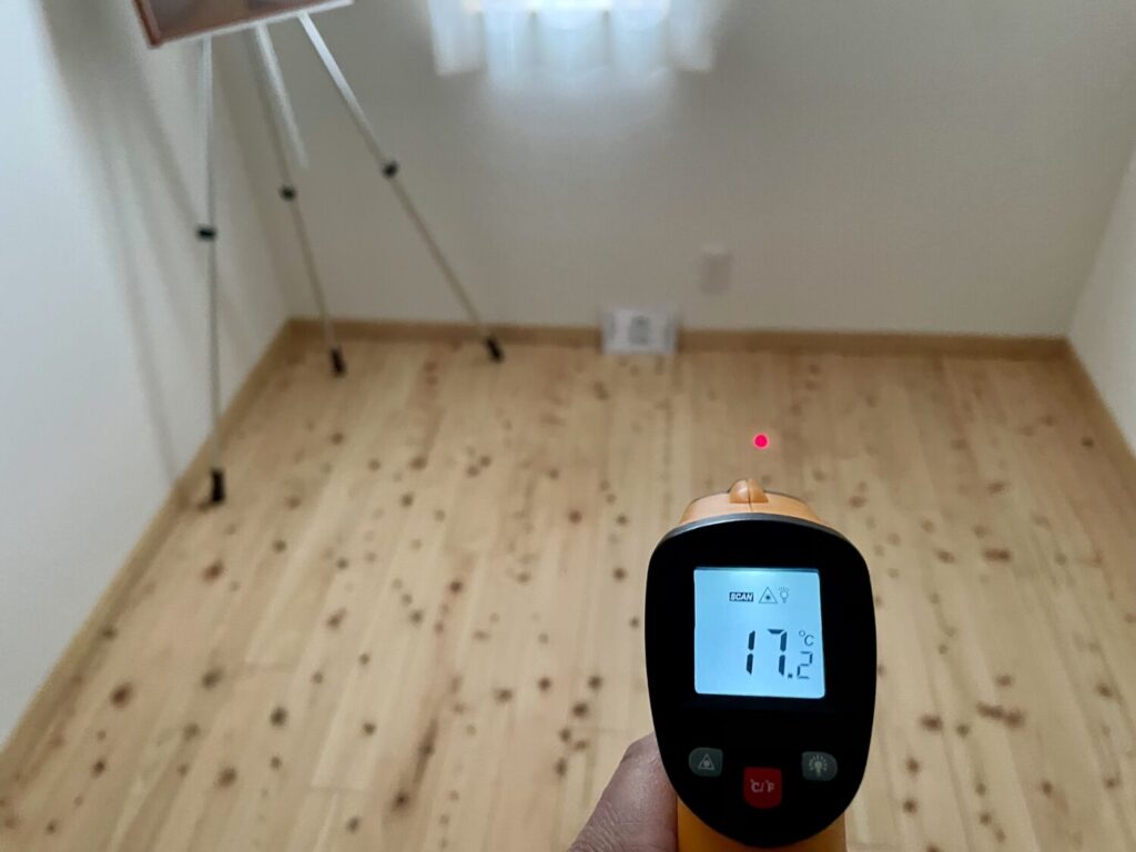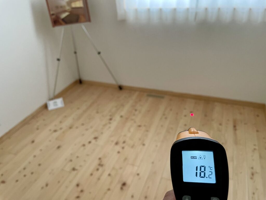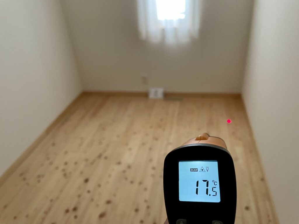 これが、UA値0.42、C値0.2、そして基礎断熱のトリプル効果のなせる業ですね。
