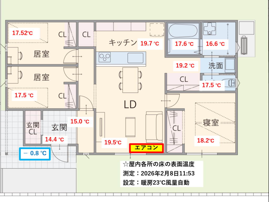 キッチンのゆかは、19.7℃もあります。