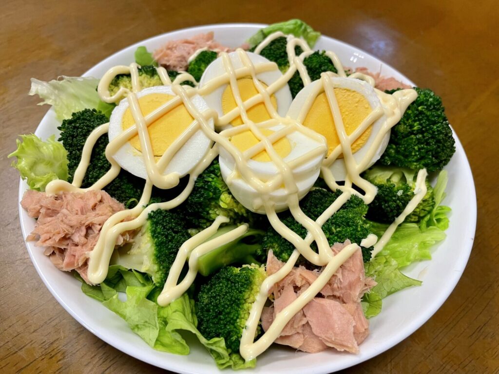 ブロッコリーとレタスとゆで卵とツナのサラダ!