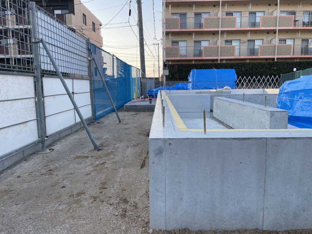西新町の現場では基礎コンクリートの脱型が行われ、